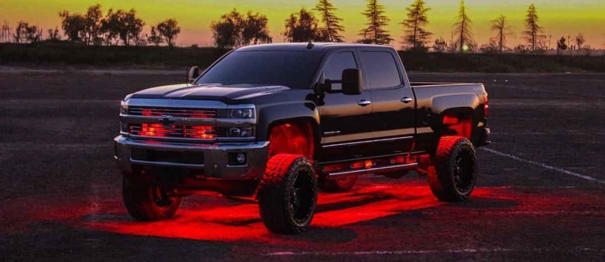 black lifted trucks with underglow